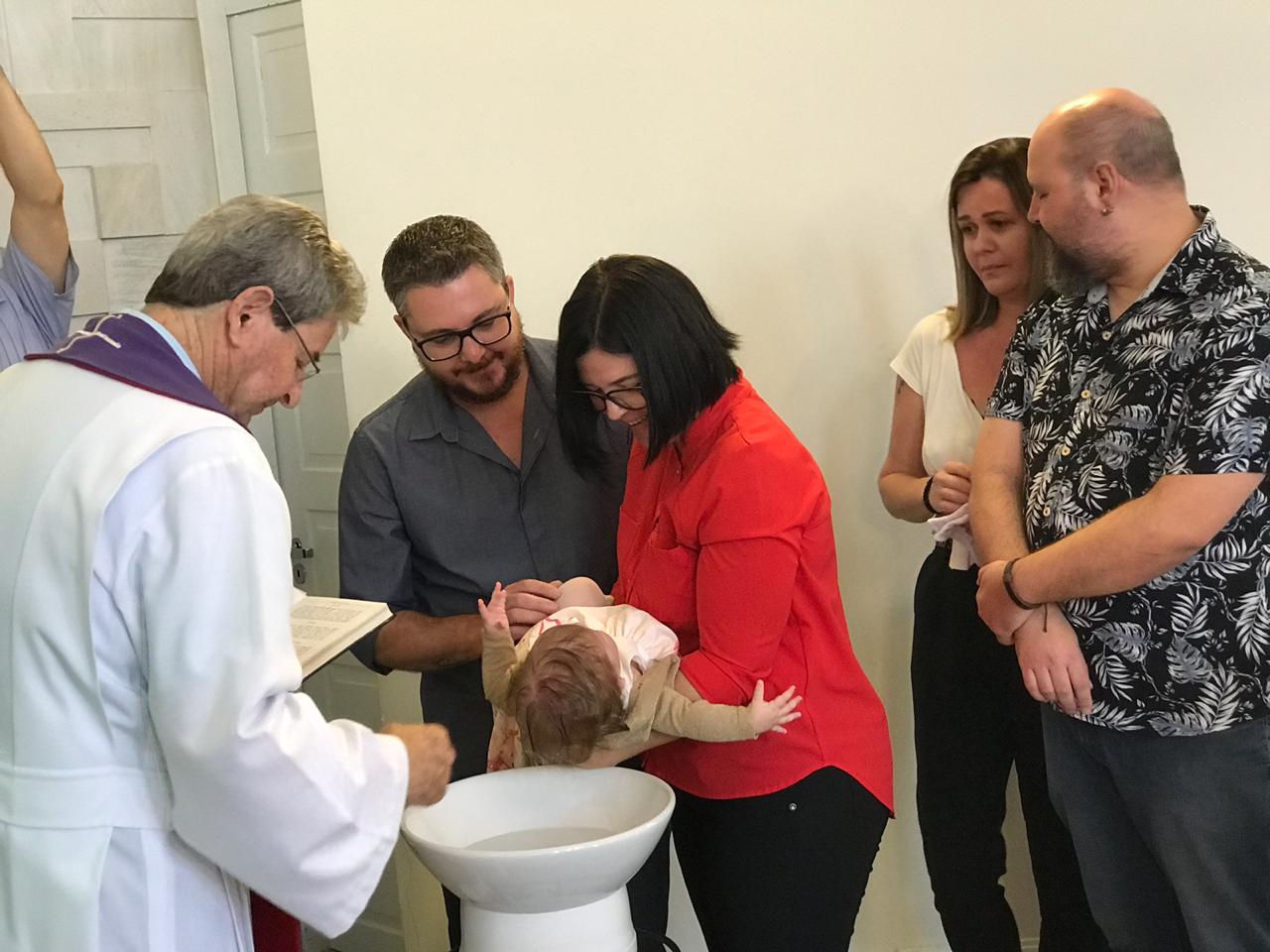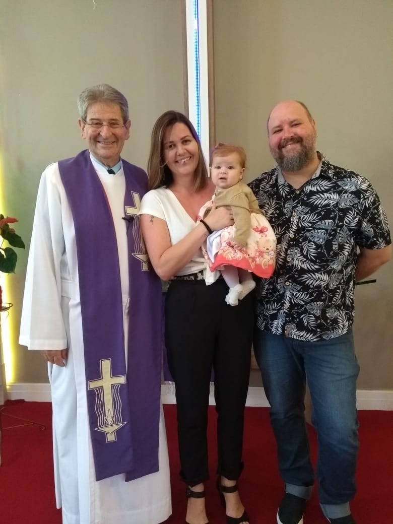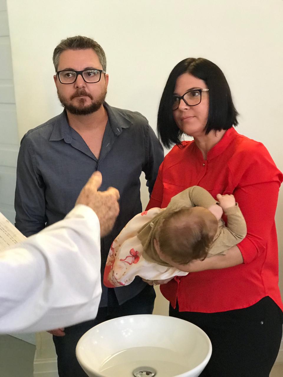 No último domingo, a Luíza Costa Sonntag – filha de Johnny e Juliana, foi batizada para a sua salvação: