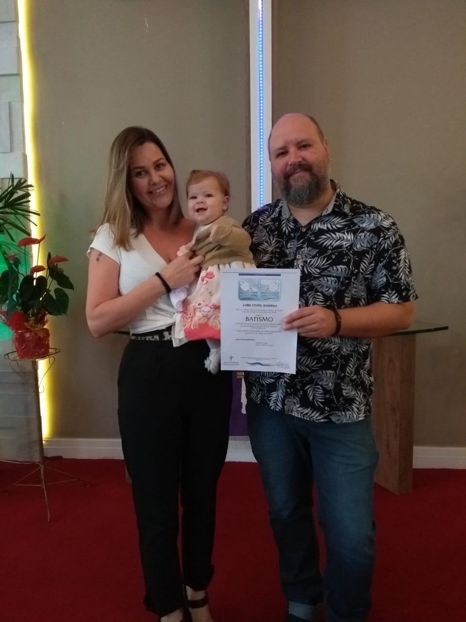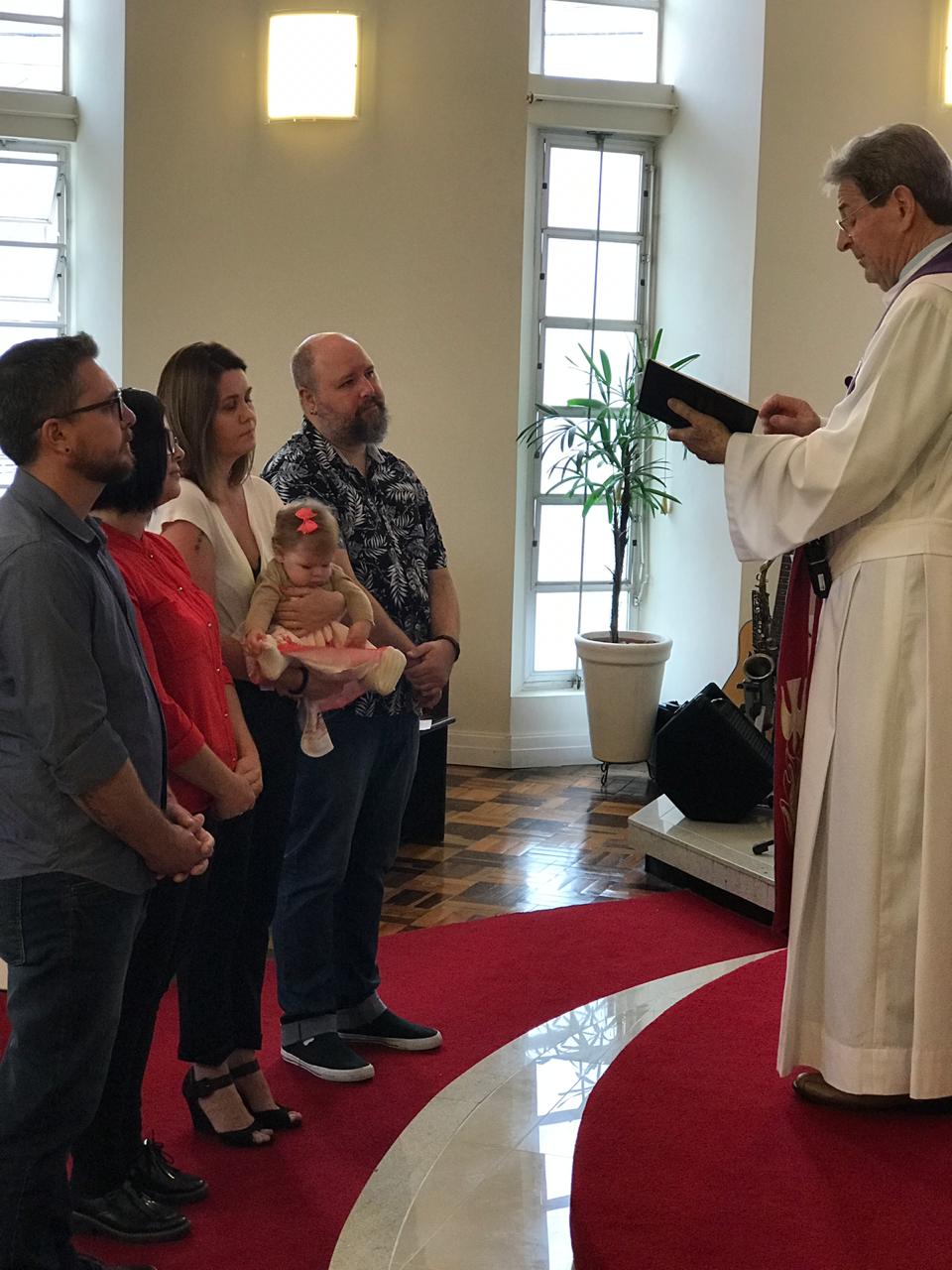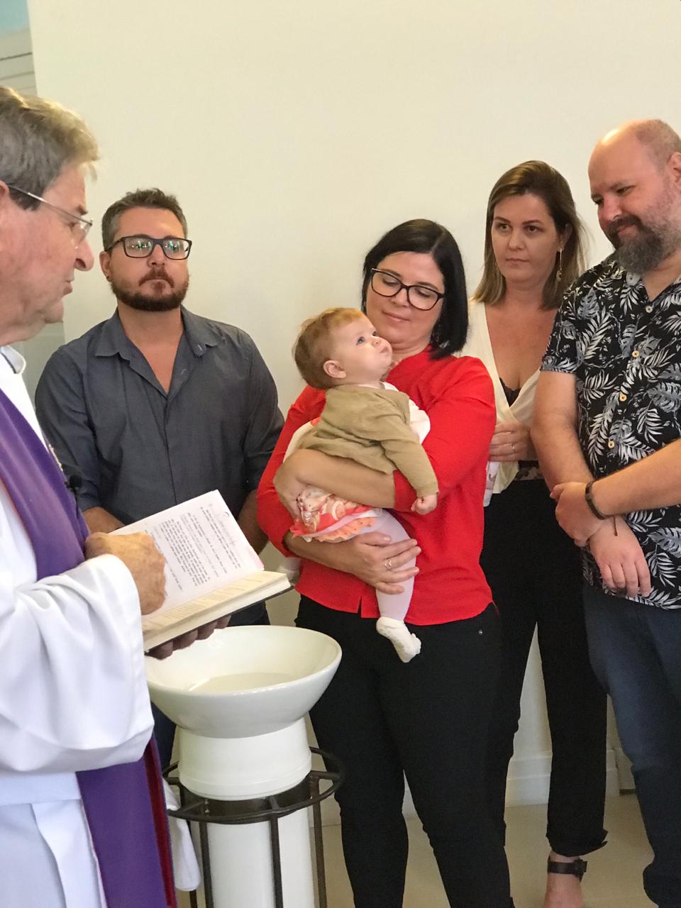 No último domingo, a Luíza Costa Sonntag – filha de Johnny e Juliana, foi batizada para a sua salvação: